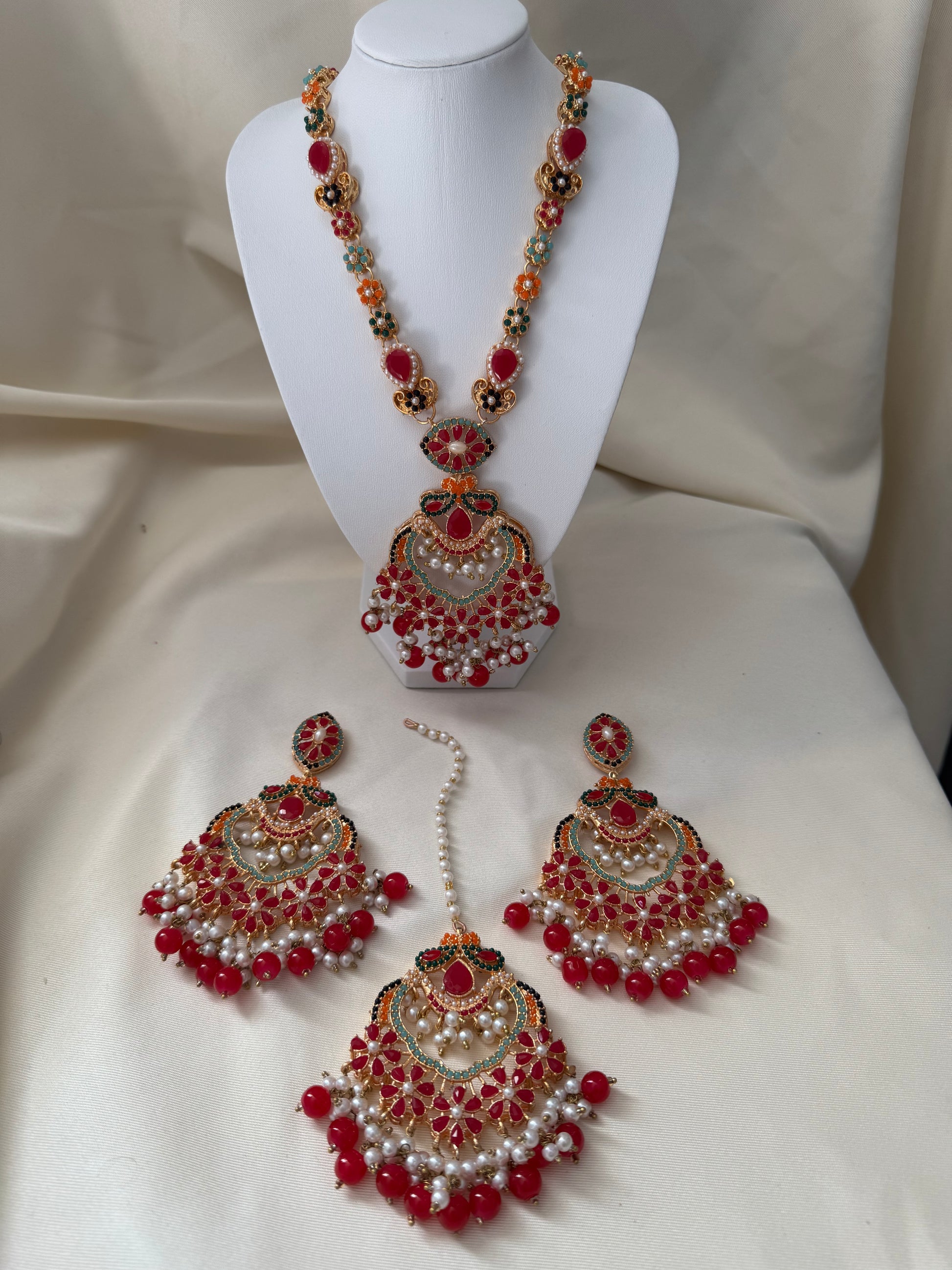 This Mala Set comes with four pieces. This design is called Norattan and it is very famous for its delicate work.