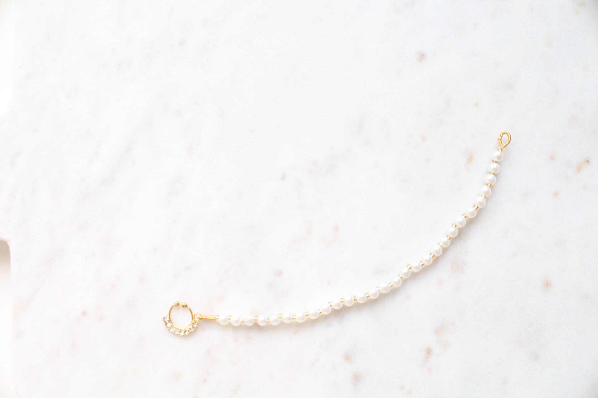 This Nath can be worn by everybody. You don't have to have a Nosepiercing for it. At the End is a Loop so you can fix it in your hair.