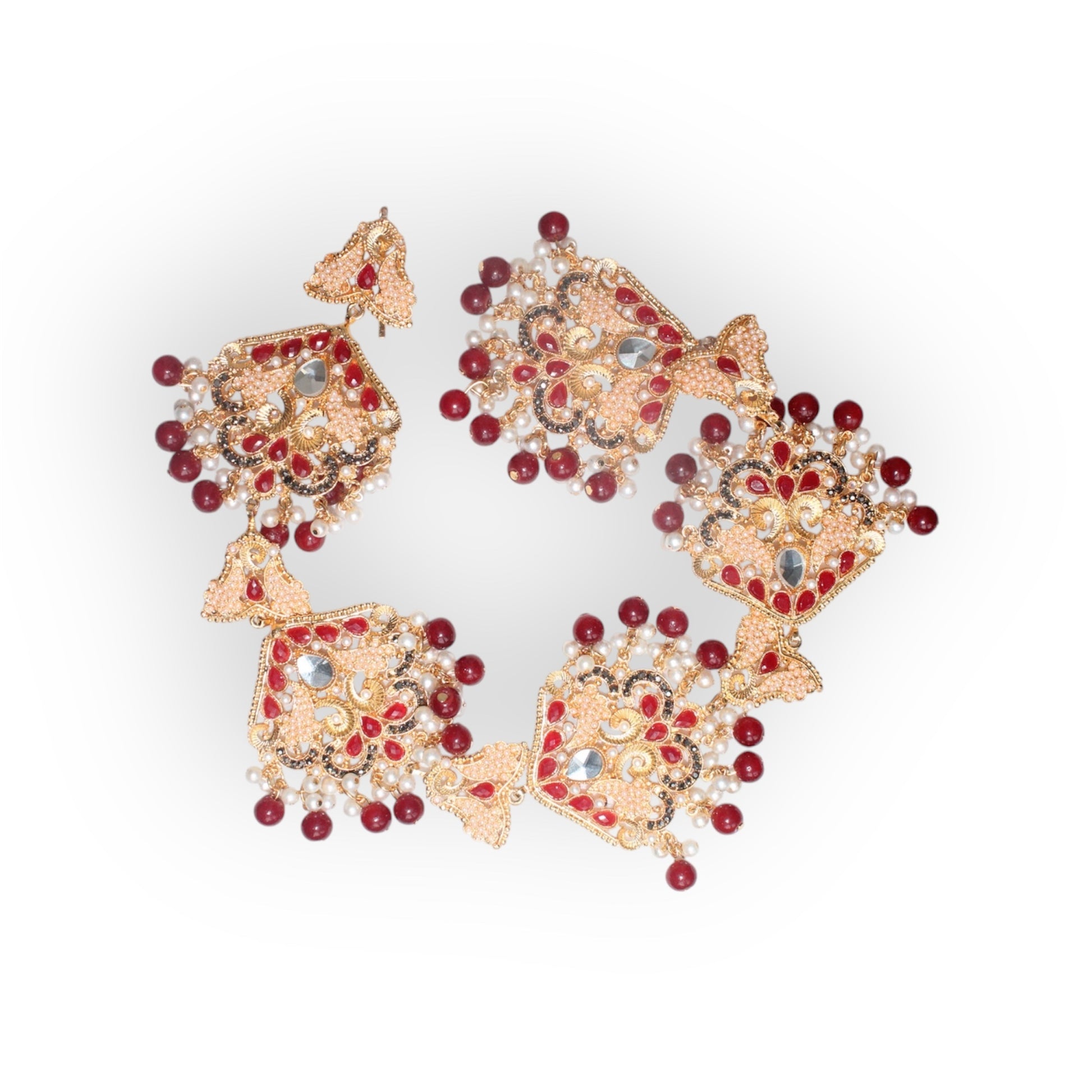 Traditionally called a Pranda, is a head accessory. This Pranda can be worn in your braid. This design is red and gold.
